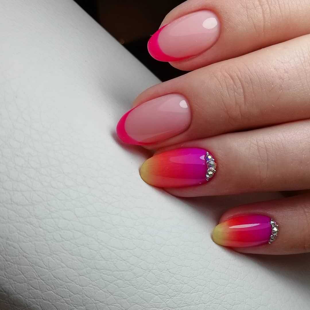 - Для уникальности оформления рекомендуют создание яркого акцента на одном или нескольких ногтях.