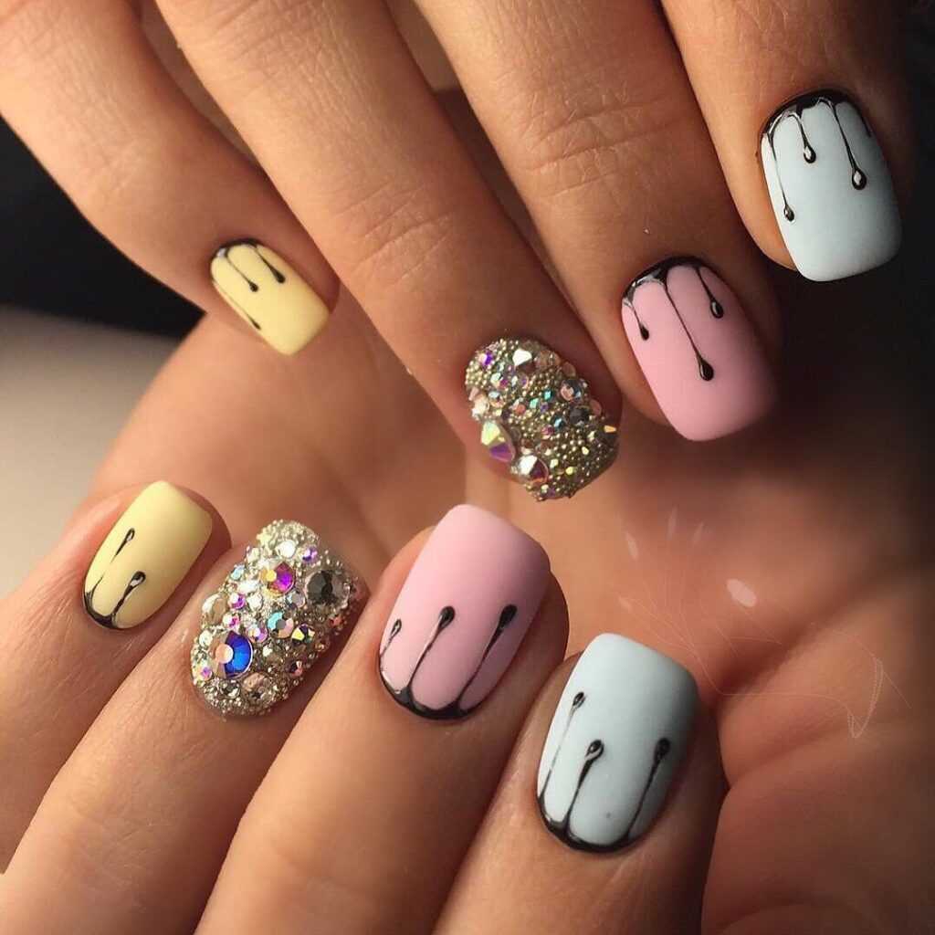 Разноцветные легкие цвета маникюра