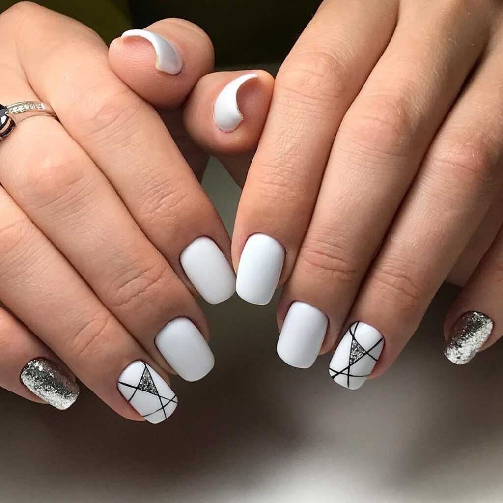 Дизайн ногтей паутина выглядит очень красиво и интересно на ногтях любой длины. Это могут быть хаотичные переплеты или четкие геометрические линии и узоры.
