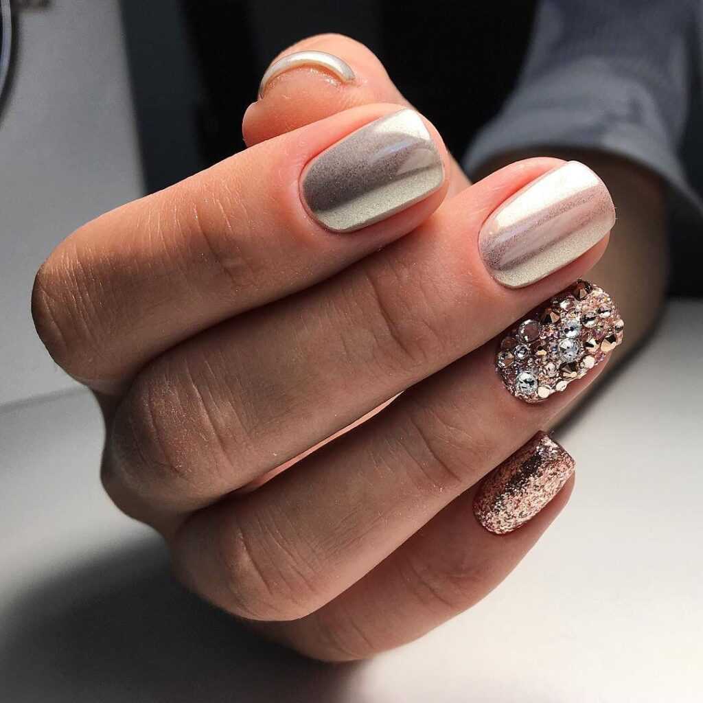 - Маникюр с блестками и стразами.