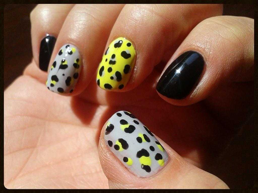 Позвольте черному цвету время от времени ложиться на ваши желтые ногти в виде интересных принтов: