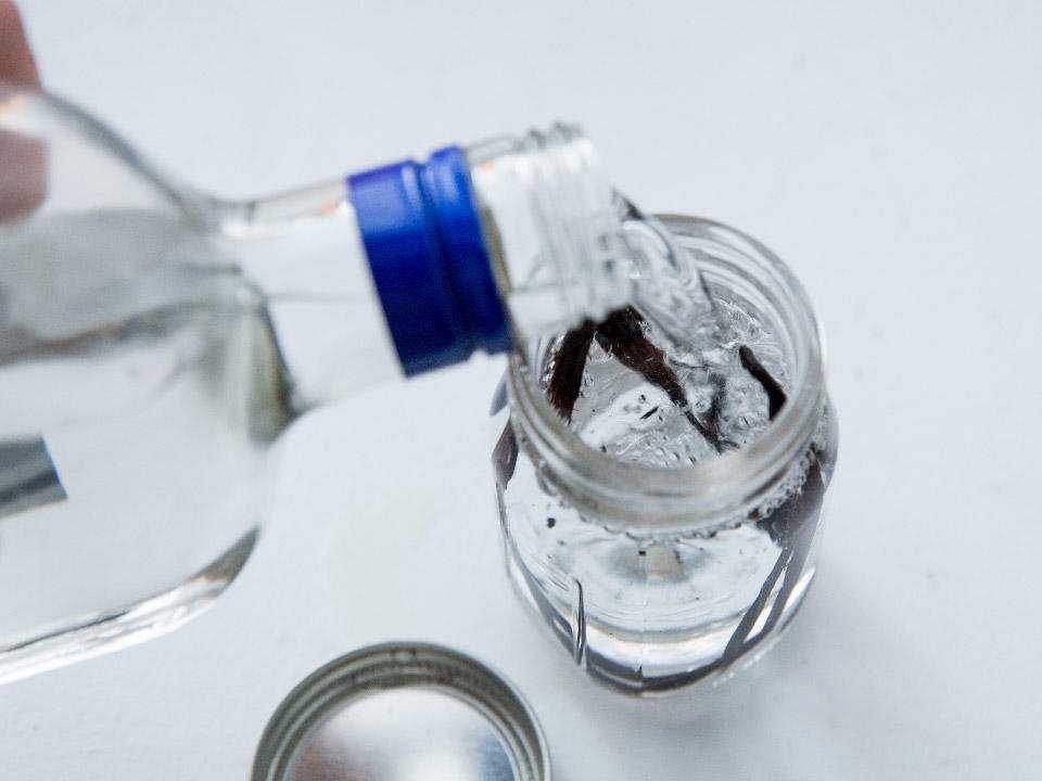 Теперь можно переходить к следующему шагу. После того, как вы вычистили семена из стручков ванили и нарезали их, залейте содержимое стеклянной банки водкой. Вы должны налить достаточно жидкости, чтобы она не просто полностью покрыла содержимое сосуда. Желательно, чтобы уровень жидкости в банке был выше кусочков ванили как минимум на полсантиметра. Для настаивания обязательно используйте водку, так как это второй основной ингредиент, без которого у вас ничего не получится.