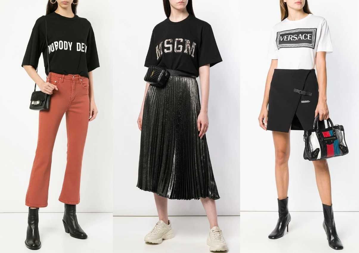 Для создания стильного, откровенно модного образа, дополняйте футболку с логотипом трендовыми вещами-маркёрами, например, джинсами с завышенной талией, мамиными джинсами; делайте футболку с логотипом одним а из слоёв многослойного комплекта.