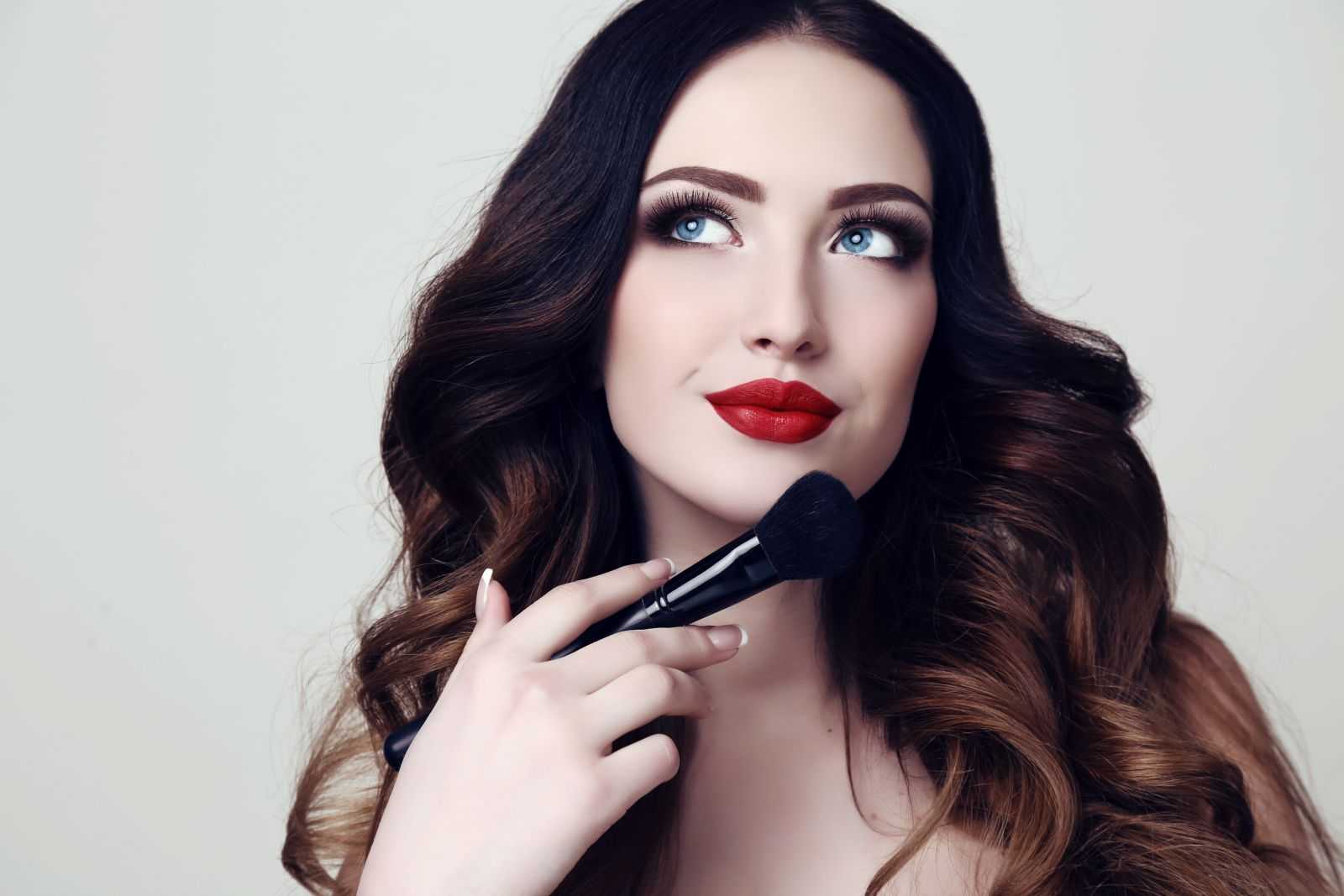 - Чтобы создать скульптурный овал лица, используйте румяна бежевого цвета, чуть темней тона основы кожи. Ресницы должны быть объемными.