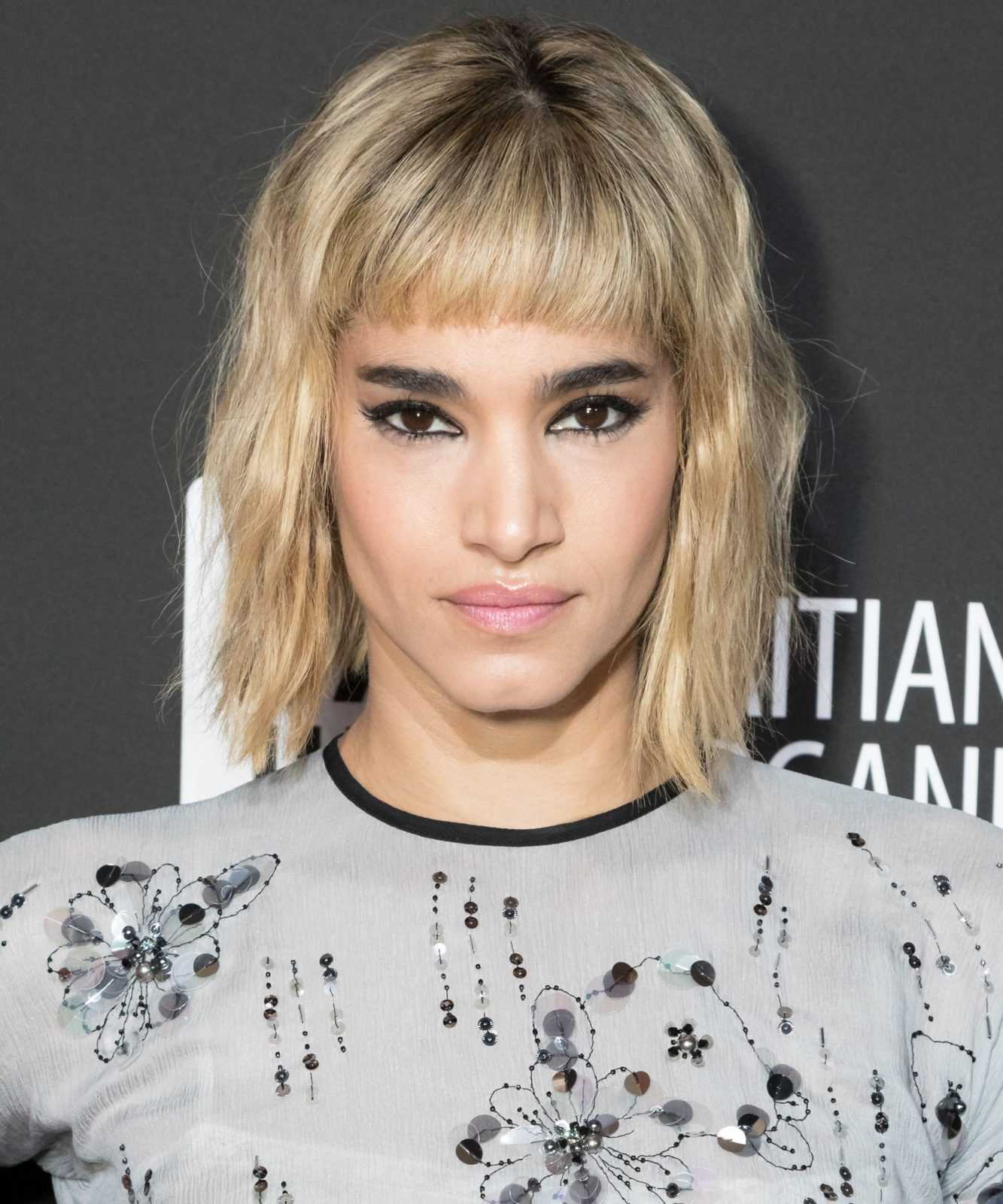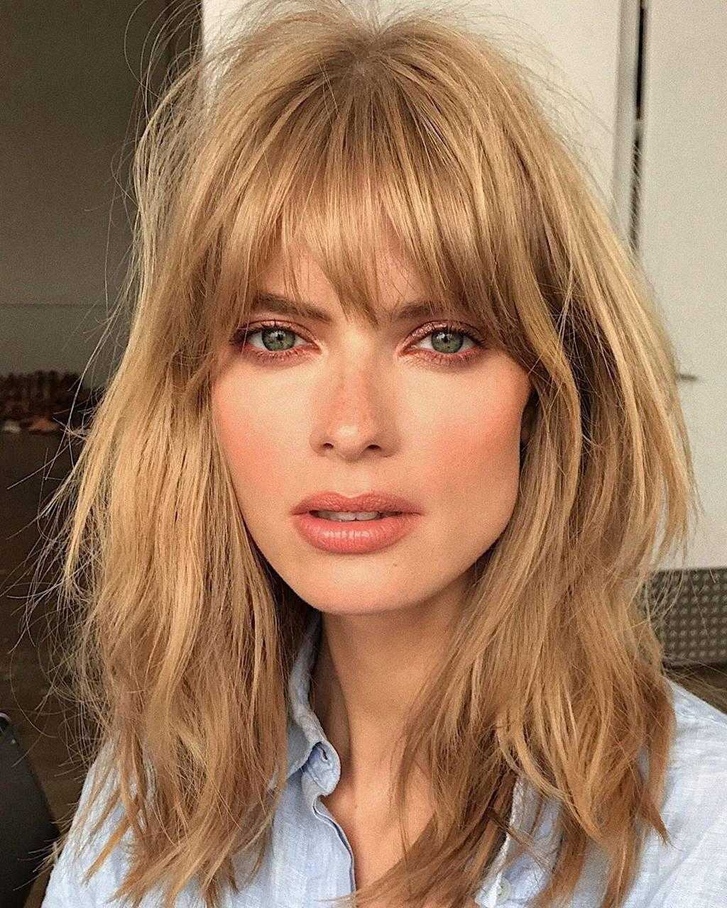 Длинную челку, разделенную по центру прямым пробором, словно шторка, выбирают многие модели и знаменитости.