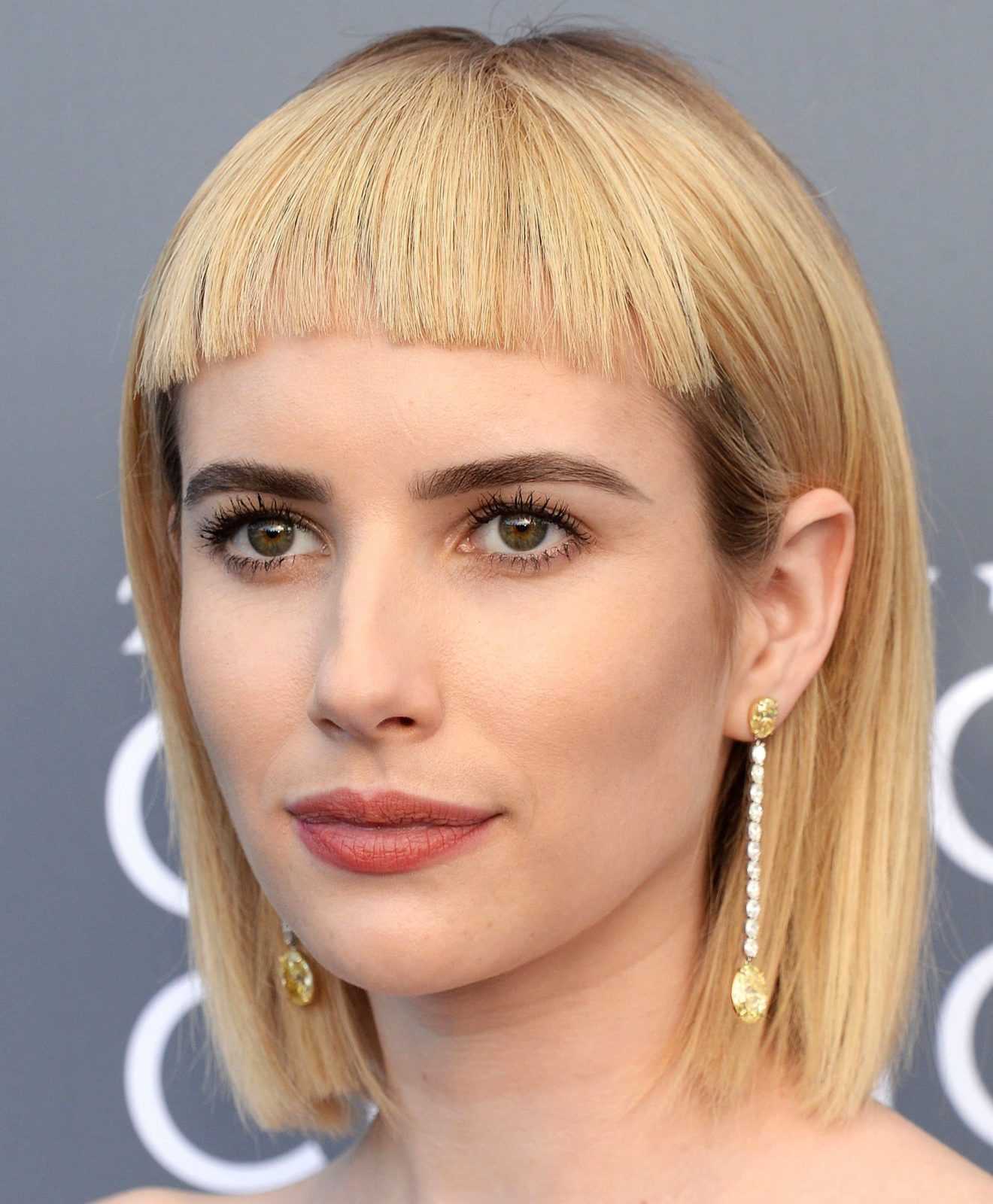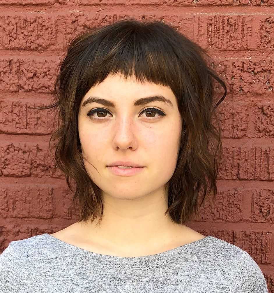 Прямые варианты создают горизонтальную линию, которая расширяет лицо, поэтому необходимо выбирать самые густые челки с ровным или слегка рваным краем, едва закрывающие брови.