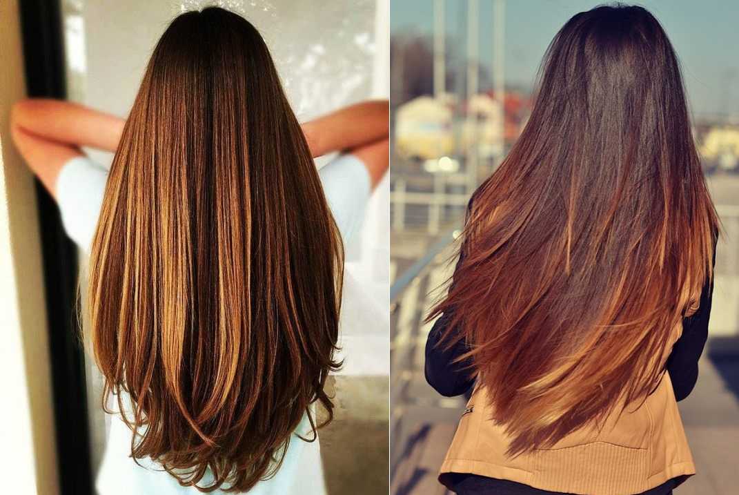 Техники, подходящие даже для волос средней длины, полностью раскрывают свой потенциал на длинных волосах. Например, тени на них могут быть не только двухцветными, но и разноцветными. Окрашивать пряди в технике выметания можно, когда длина позволяет, в разных слоях и на разных уровнях, «сдвигая» границы перехода оттенков выше или ниже, в зависимости от задумки.