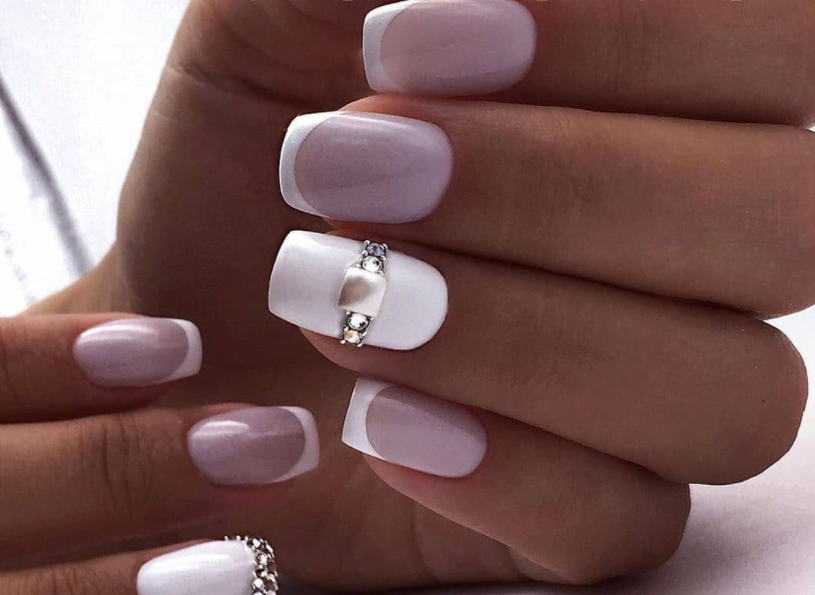 Классика всегда в моде. Какой она должна быть? База — максимально нейтральная и естественная (нюд, прозрачный розовый или молочный), улыбка — ровная средней толщины. Классическая каемка всегда белая. И, наверное, классический французский маникюр лучше всего подходит для дополнительного дизайна. Нейтральная база сможет подружиться с любым — самым ярким и блестящим — дизайном.