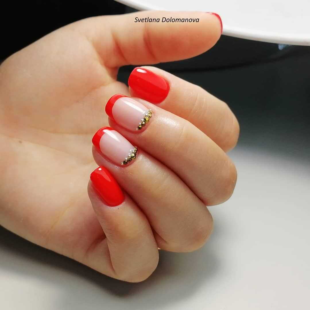 Хотите маникюр красный френч, но при этом категорически не хочется выглядеть женщиной-вамп? Используйте зимние или скандинавские мотивы, также можно сочетать красный с другими оттенками — летом это может быть нежно-зеленый, и тогда ваши ноготки будут напоминать ягоды земляники.