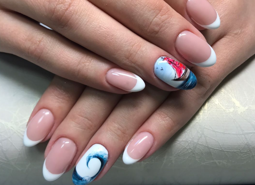 Например, на нюдовой основе прекрасно смотрятся яркие насыщенные или пастельные кончики ногтей.