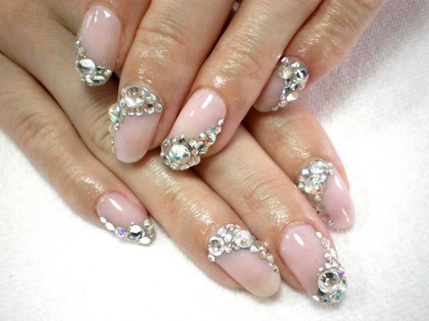 Использовать для украшения блёстки. Главное соблюдать меру, чтобы не получилось слишком броско. Чтобы этого избежать, рекомендуется наносить стразы на 1-2 пальчика.