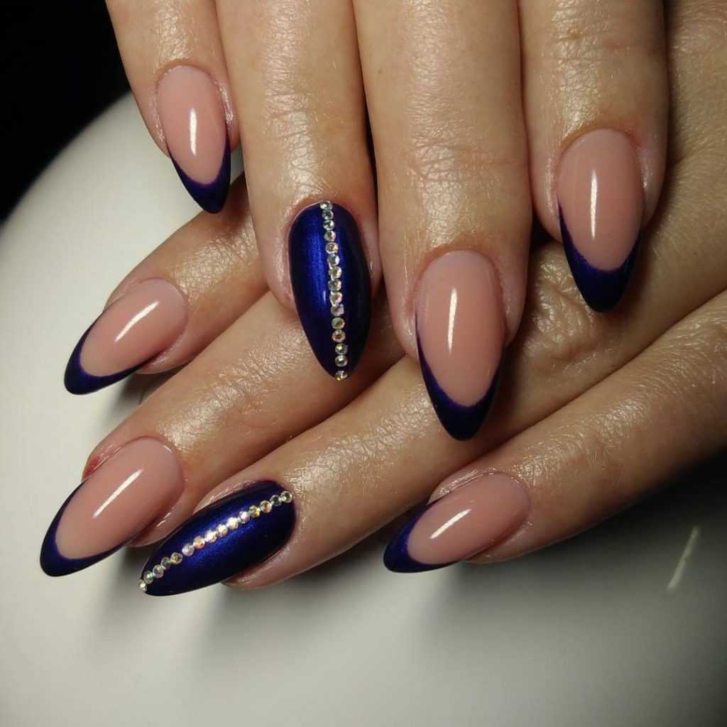 Темный френч лучше не перегружать дополнительным дизайном. Минимализм в черном, синем и бордовом цветах — главный тренд осени 2022 года.