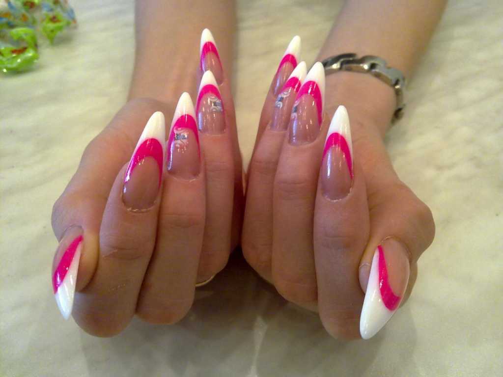 Острые ногти – это атрибут дерзких и уверенных в себе девушек. Кажется, что французский маникюр и острые ногти – это разные реальности. Но, почему бы и нет? В этом случае, линия улыбки может иметь любую форму. Нужно просто включить фантазию и поделиться своей идеей с мастером.