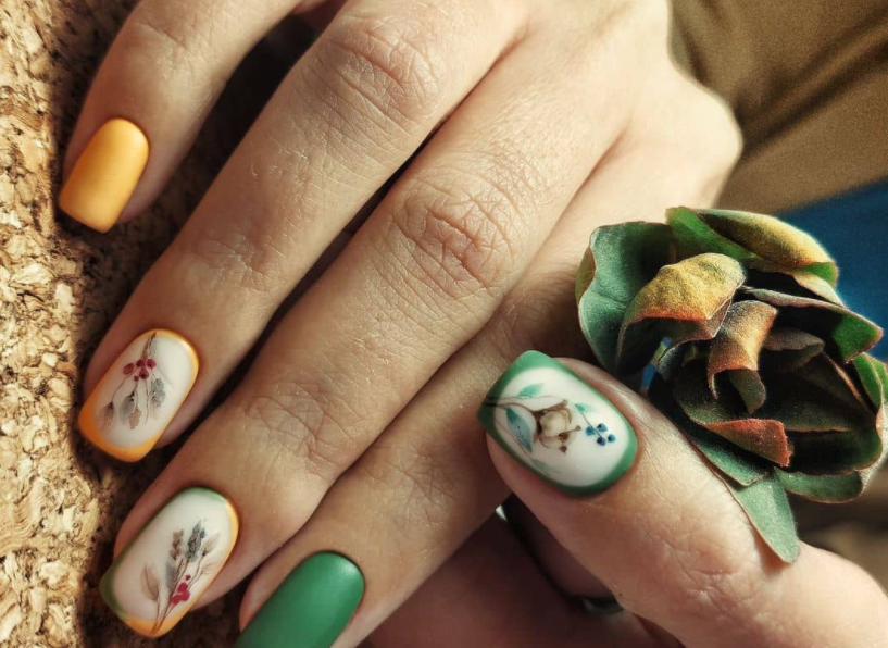 Подобный дизайн замечательно впишется в свежий летний или весенний образ. В нём нет и намёка на обыденность, а только присутствие нежных, но в то же время сочных и жизнерадостных цветов.