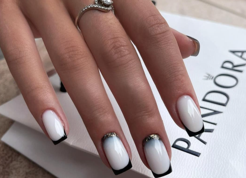 Девушки могут выбрать разные варианты оформления ногтей. Без внимания не остаётся классический вариант френча. Ногти, кончики которых украшены стразами или блестками, находятся на пике популярности. Также они могут быть контрастными, то есть отличаться от основного фона. Хорошо смотрится покрытие со светлым краем, но темной ногтевой пластиной.