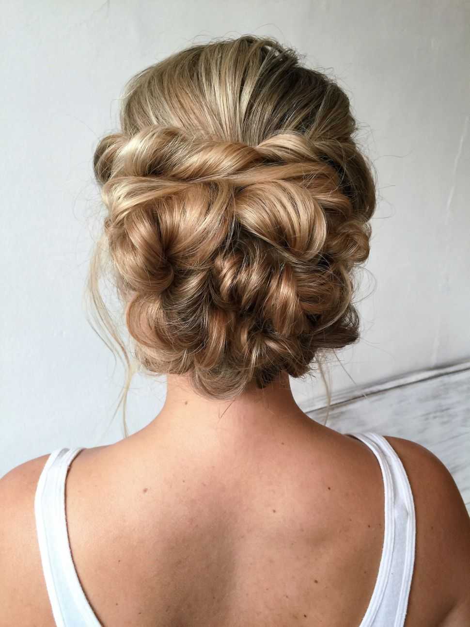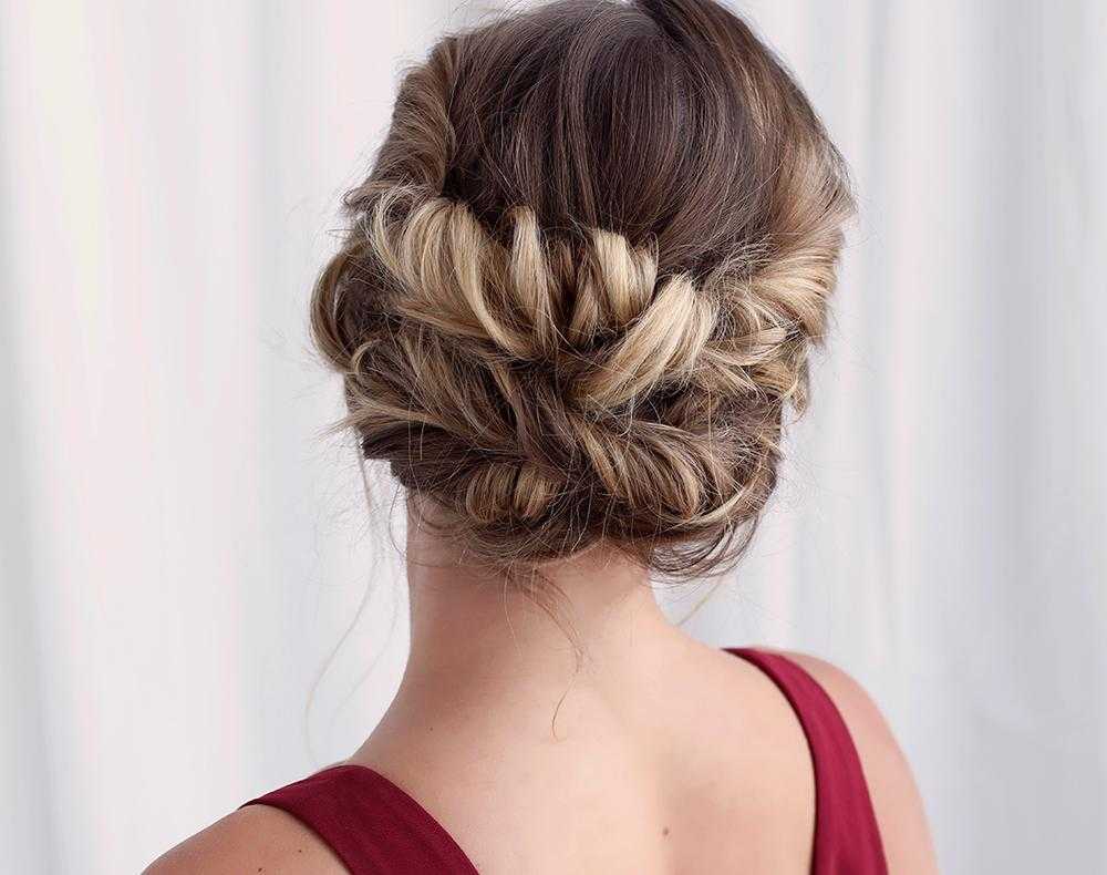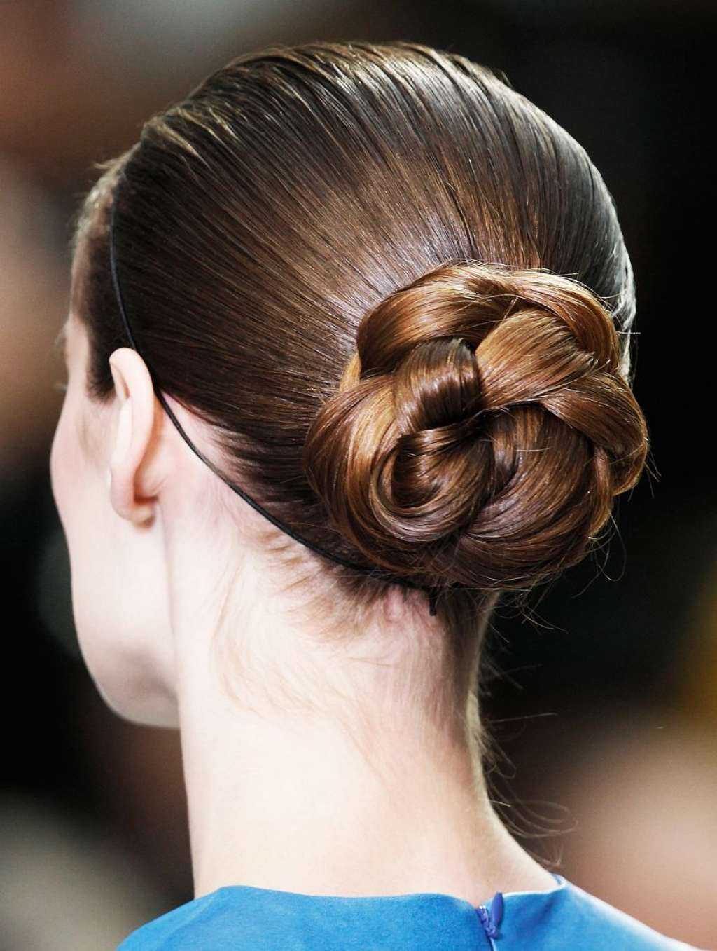 - стильным дизайнерским решением является пучок, сделанный из переплетающихся между собой кос;