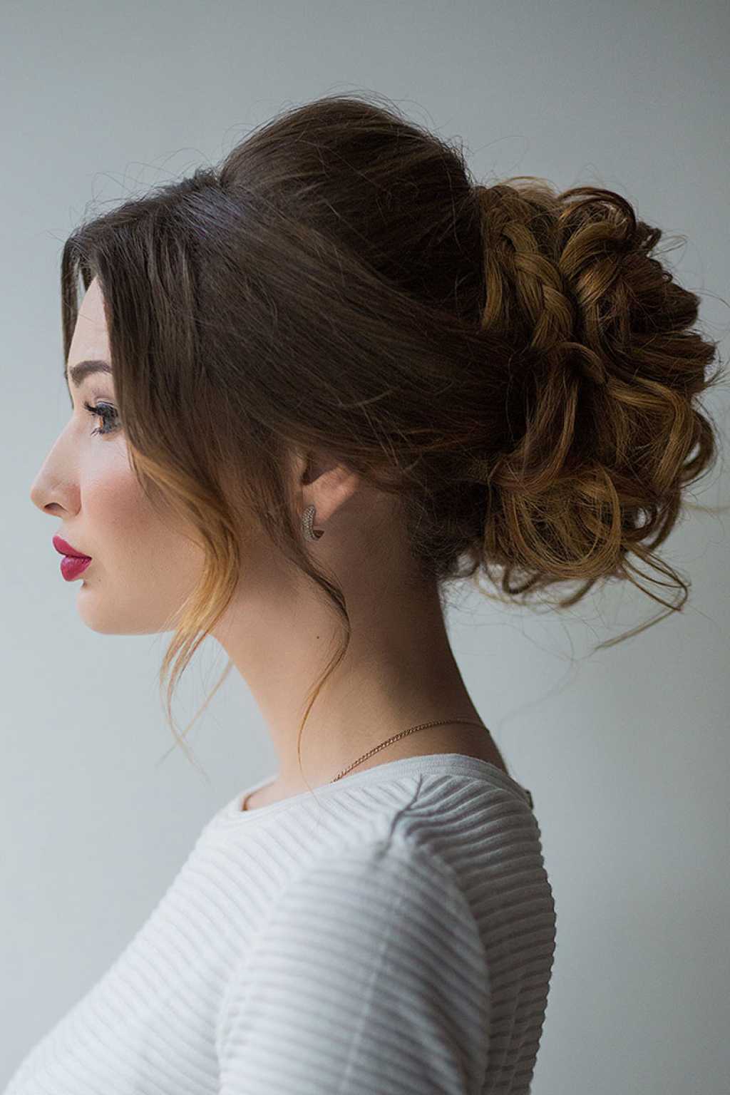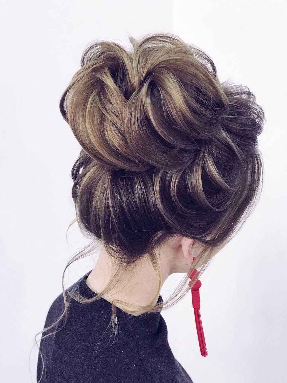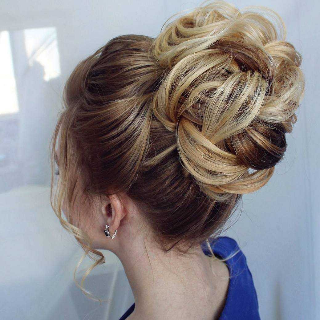 - деловые высокие прически могут быть сделаны в виде пучка, такое расположение придает укладке более эффектный вид. При желании создать более сдержанный и лаконичный лук рекомендуется располагать пучок на затылке;