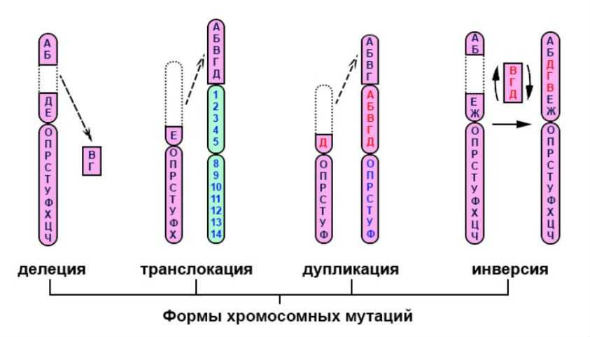 - делецию — потерю хромосомы вместе с содержащимися в ней генами;