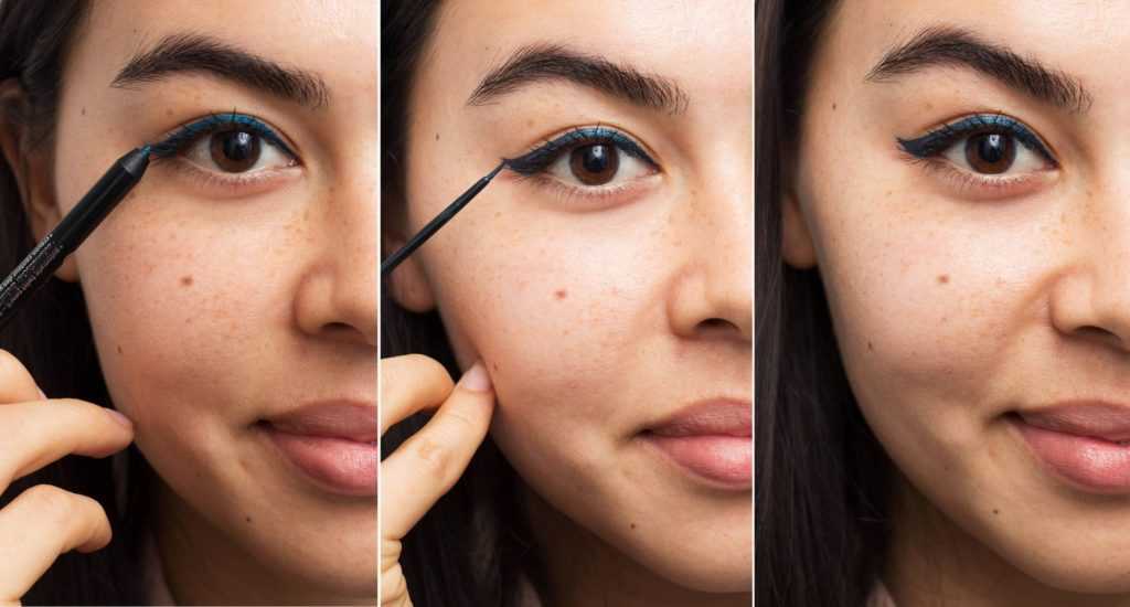 Высока вероятность того, что рука дрогнет в самый неподходящий момент, и если при проведении линии карандашом или тенями это может и не быть видно, то с подводкой такой фокус не пройдет.