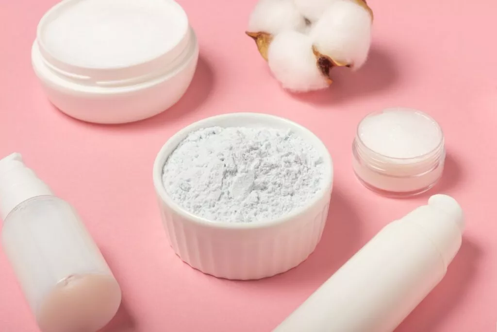 Каолин подходит практически для любого типа кожи и считается одной из самых мягких доступных. Проявляет деликатный, не раздражающий эффект при повышенной чувствительности. Находится в косметических продуктах: масках, скрабах для лица, помогающих очищать и отшелушивать, оставляя после себя гладкую поверхность, ровный тон и текстуру.