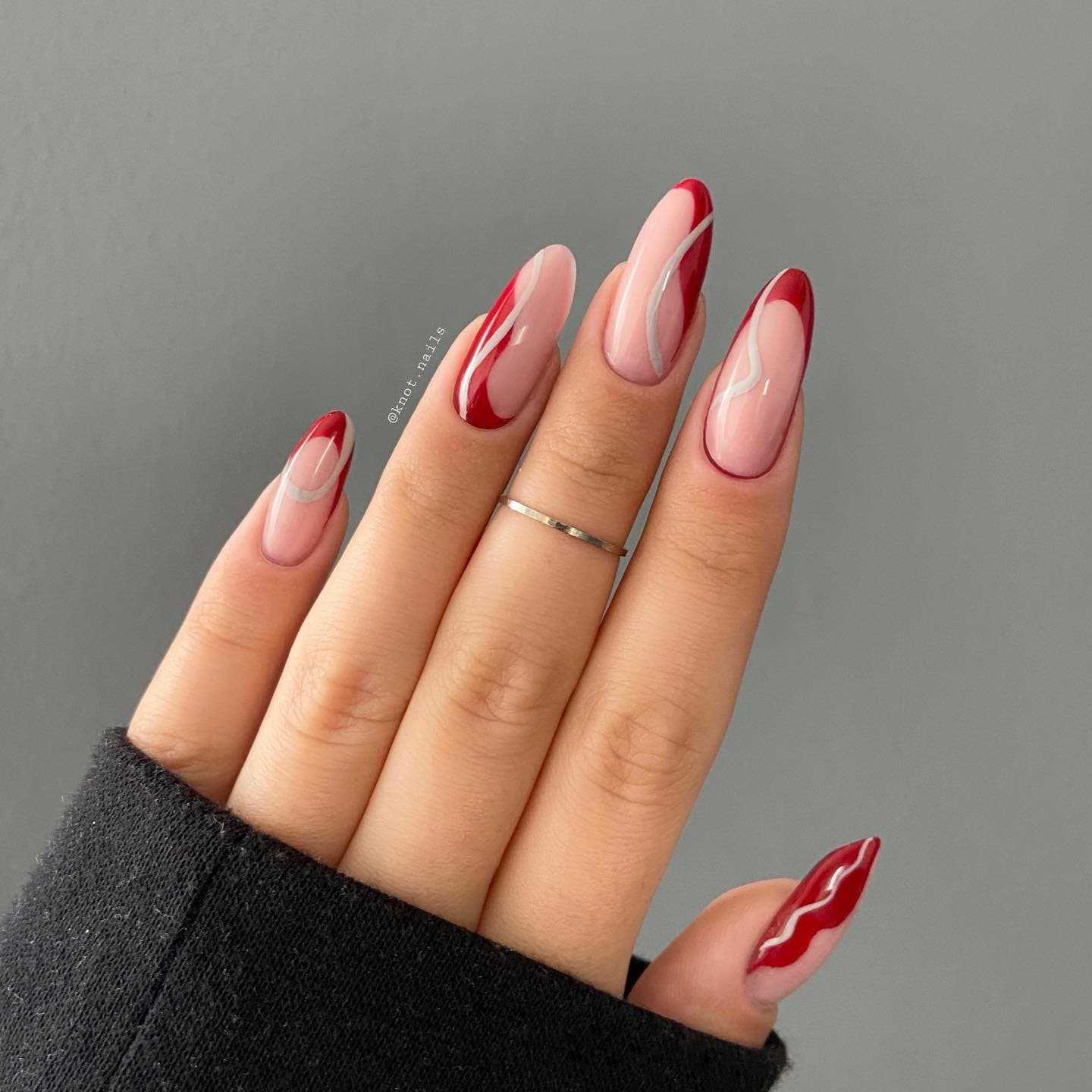 Соединим классику с классикой? В нашем случае получится настоящая бомба, а именно трендовый маникюр в красных тонах 2022. Причем в особенностях дизайна можно себя абсолютно не ограничивать, придумывая все новые и новые варианты комбинации этих стилей. Например, сделать красную основу и белую полосу. Или наоборот — красную “улыбку” на стандартной полупрозрачной базе. А может, у тебя получится придумать что-то уникальное?