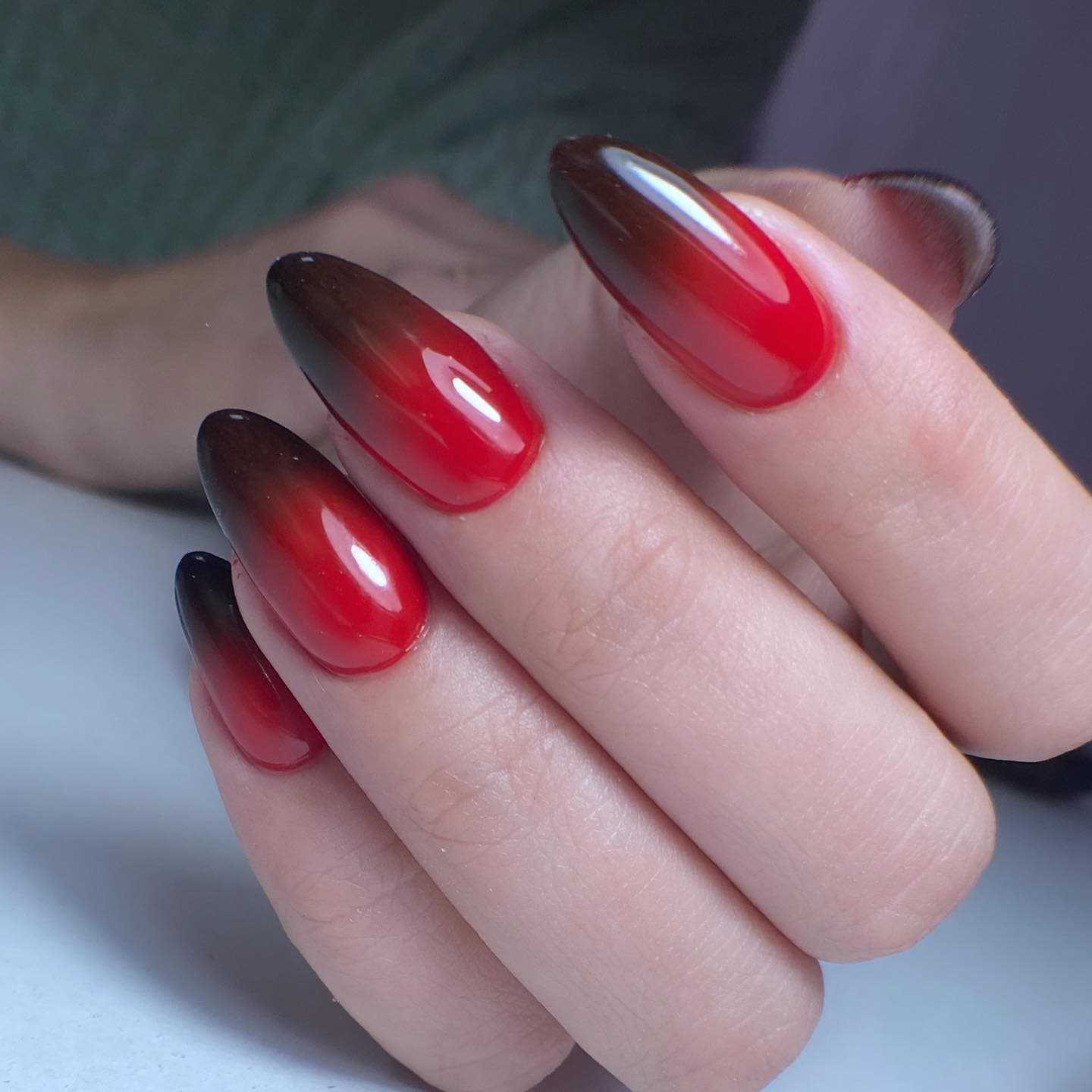 Омбре с участием красного цвета — очень свежий и необычный тренд, который можно обыграть различными способами. Итоговый стиль такого маникюра будет зависеть от выбранных цветов, поэтому комбинаций здесь может быть масса. Сделав плавный переход из бело-розового в красный, ты получишь максимально сдержанный и элегантный нейл-арт с ноткой оригинальности. Желто-красный градиент — готовый номинант премии “Летний маникюр 2022”. А красно-черное омбре дополнит дерзкий образ.