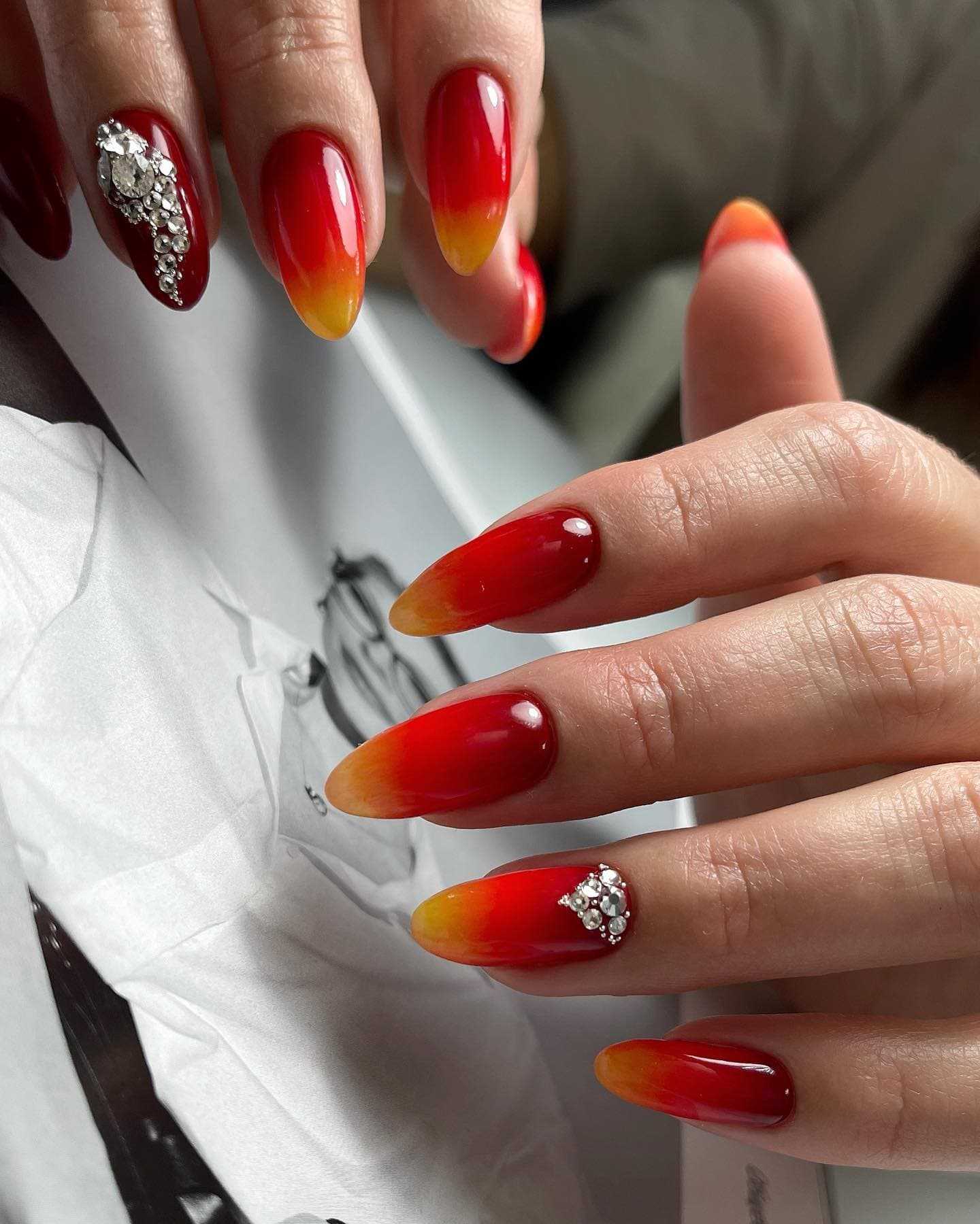 Выбирайте красно-жёлтый маникюр для яркого образа