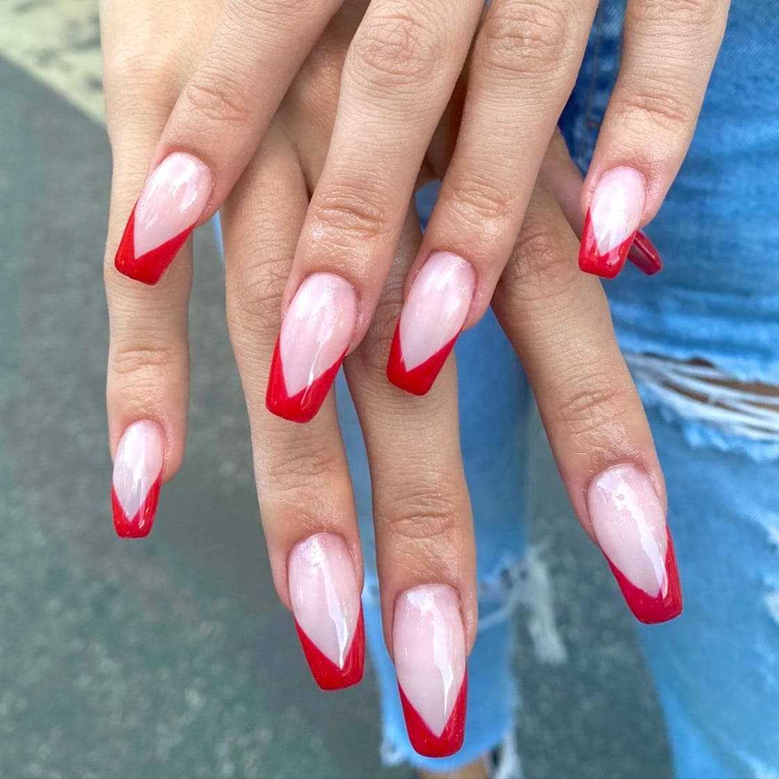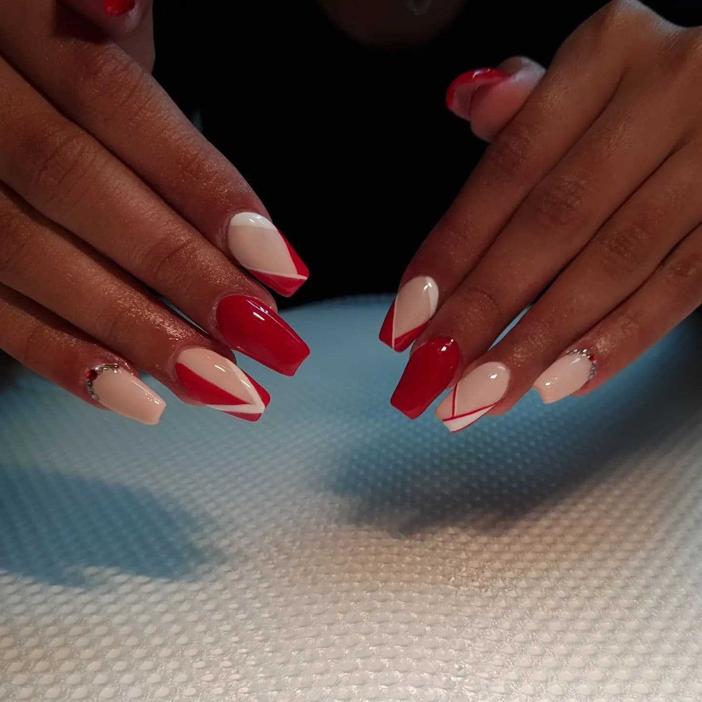 Сочетайте белые и красные цвета для создания обратного французского маникюра