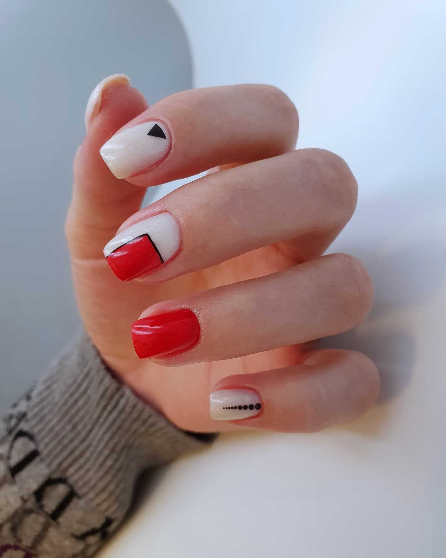 Красный маникюр с белым и черным: фото-идеи 2022-2023