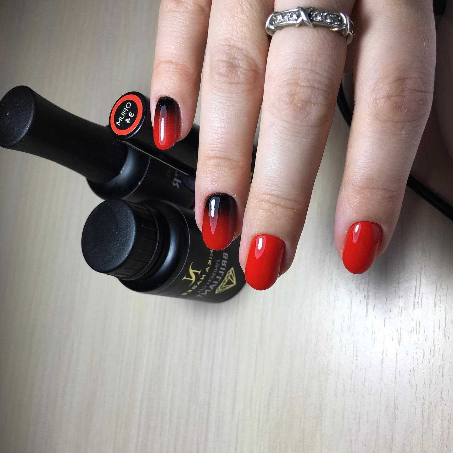 Делать маникюр с применением красного и чёрного цвета стоит, только если отросший кончик превышает 2 мм.