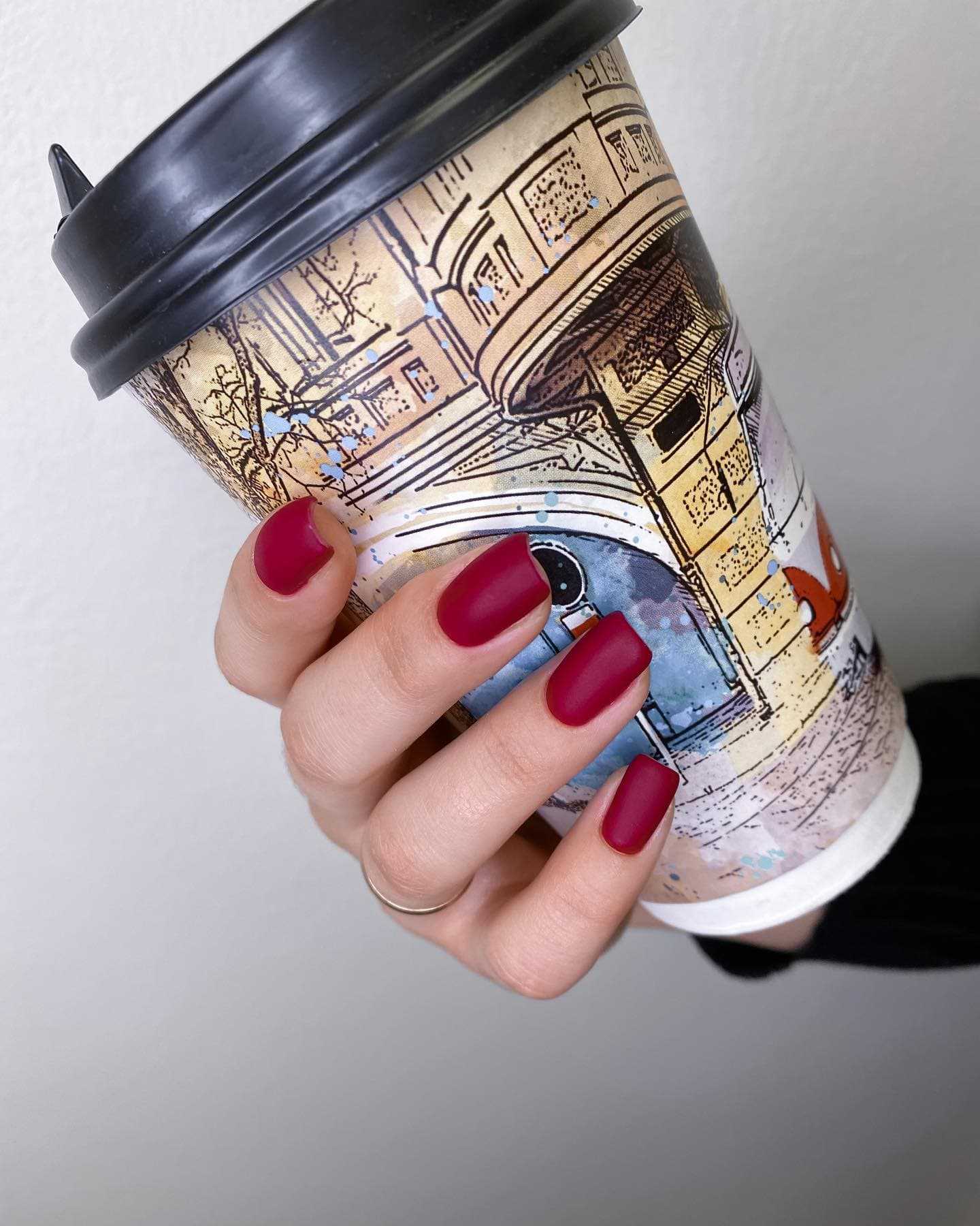 Матовый красный маникюр – это новинка сезона 2019 г. Для его исполнения используется специальный цветной гель-лак для матового маникюра, также можно использовать и глянцевый, но в завершении, на ногти наносят матирующее покрытие.