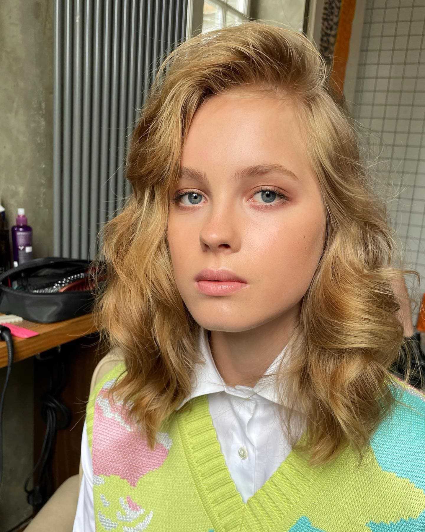 Линия бровей – естественная. Не толстая, но и не еле заметная. Цвет – одного тона с волосами.