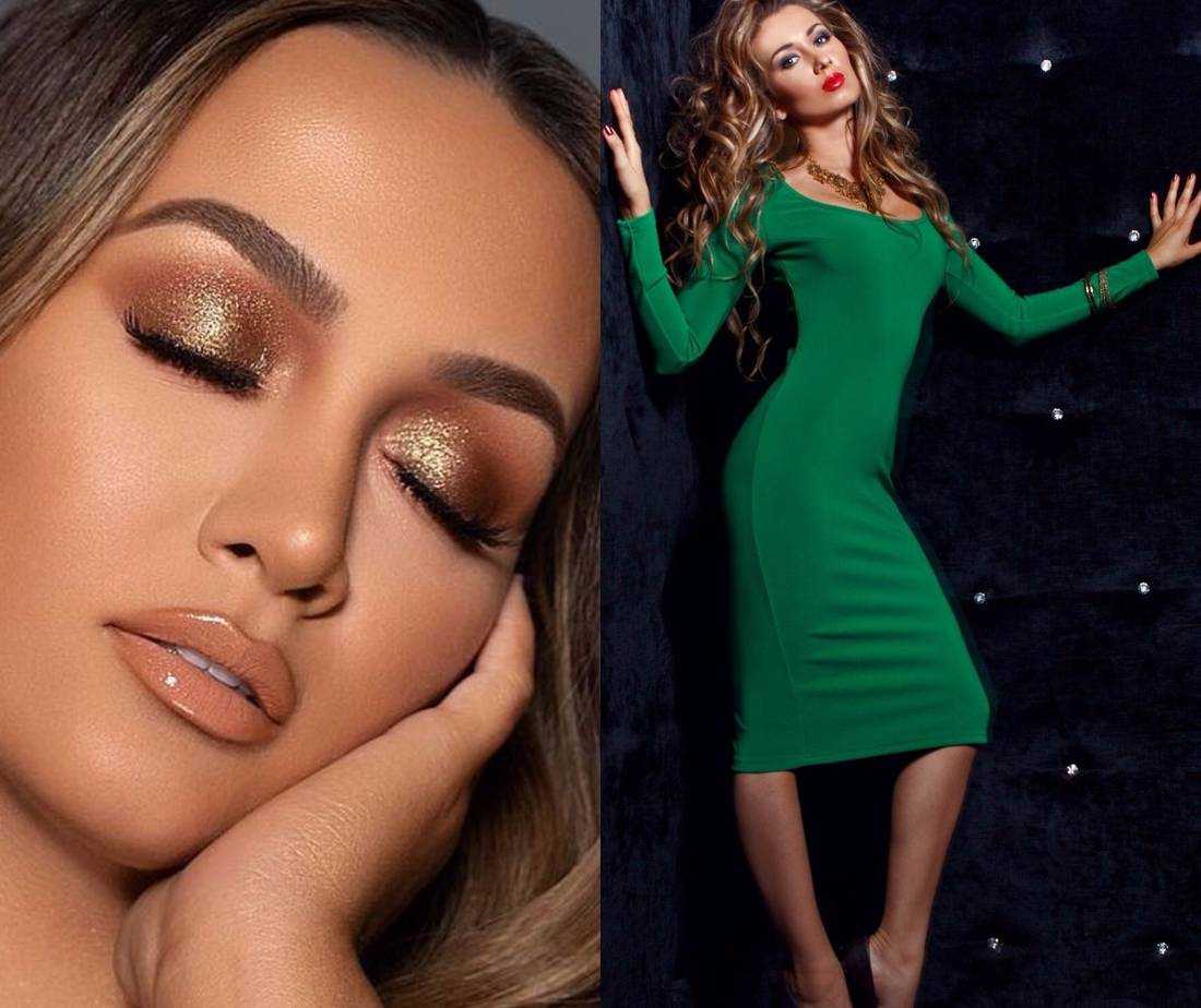 2. макияж с оттенками золота хорошо сочетается с одеждой ярких тонов. Золотистыми могут быть тени, пудра или даже помада — такой вечерний макияж будет уместен с платьем ярко-синего цвета, оттенков фуксии и бордо.
