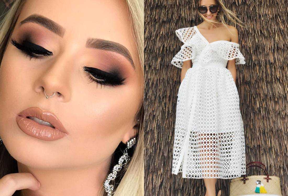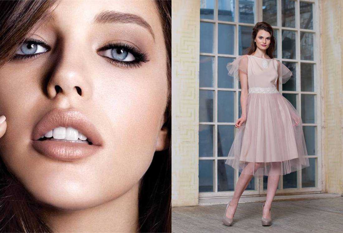 Бежевое платье и макияж