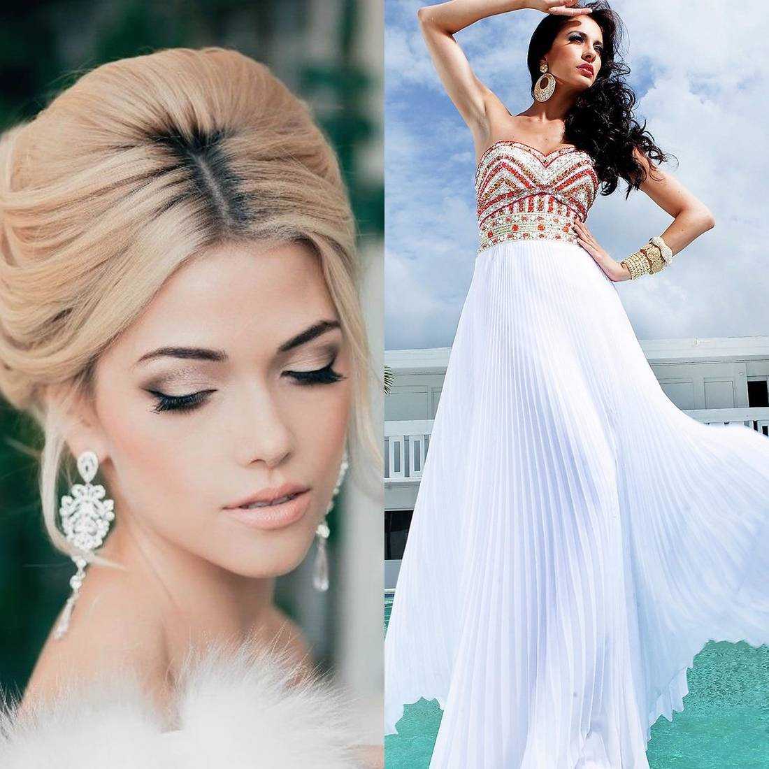 От вида причёски и цвета волос зависит то, как будет смотреться конечный образ. Для различных видов пучков подойдут более сдержанные цветовые решения. Если есть желание добавить акцентов, можно присмотреться к коричневым смоки-айз