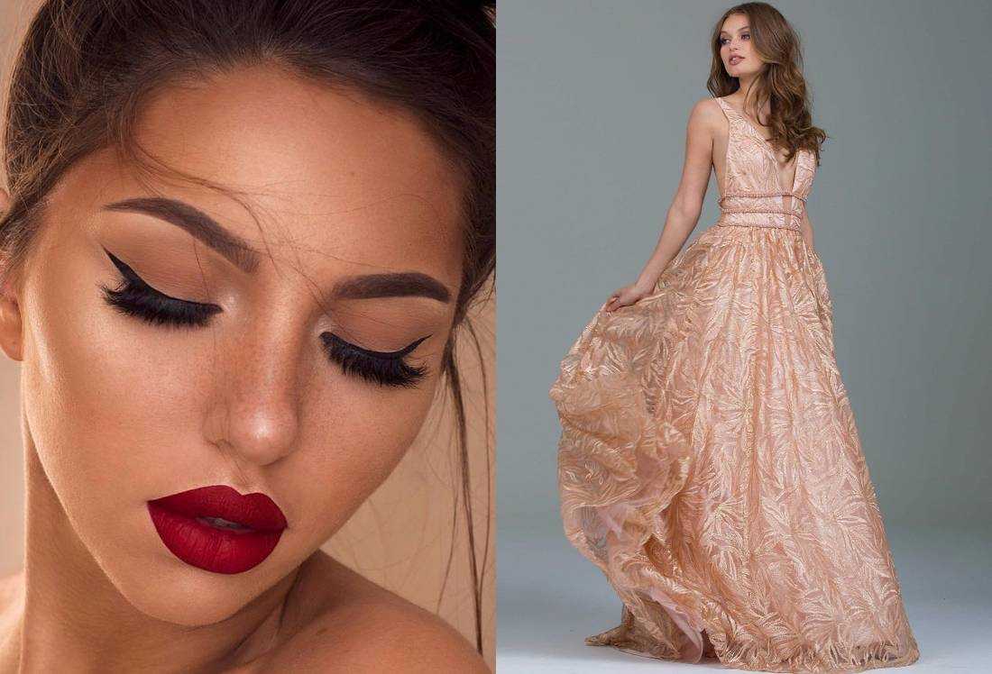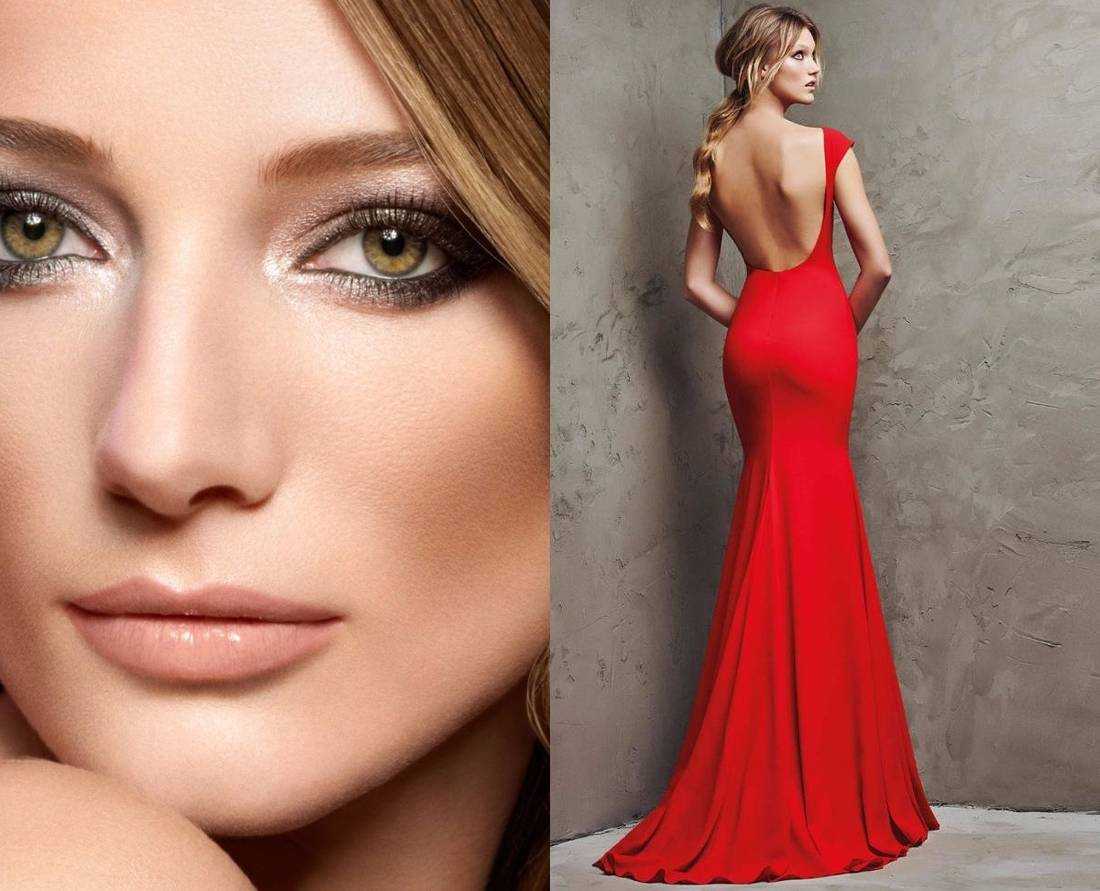 Исключения при выборе акцента составляют макияжи в нюдовых тонах, но с ними следует быть аккуратными, так как они подойдут не к каждому платью красного тона.