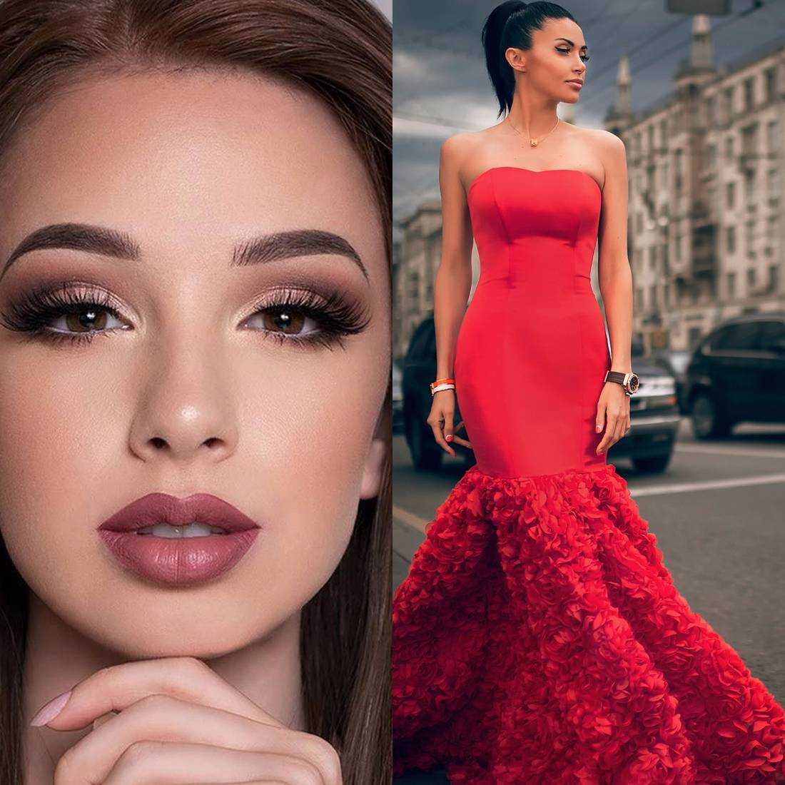 Какой дневной и вечерний макияж подойдет к красному платью брюнетке?