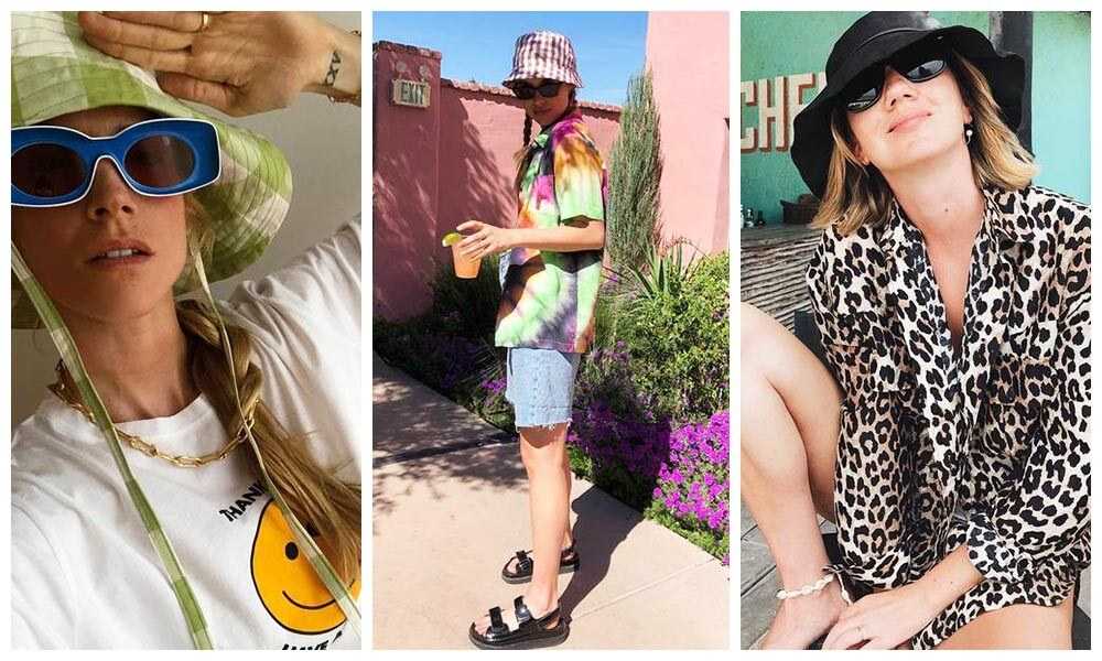 Чаще всего это яркие вещи с принтами, которые смело комбинируют пляжные девушки: тай-дай, звериный орнамент, тропические узоры и многое другое. Панама, кепка или соломенная шляпа, очки-авиаторы, сандалии или кроссовки органично дополнят образ.