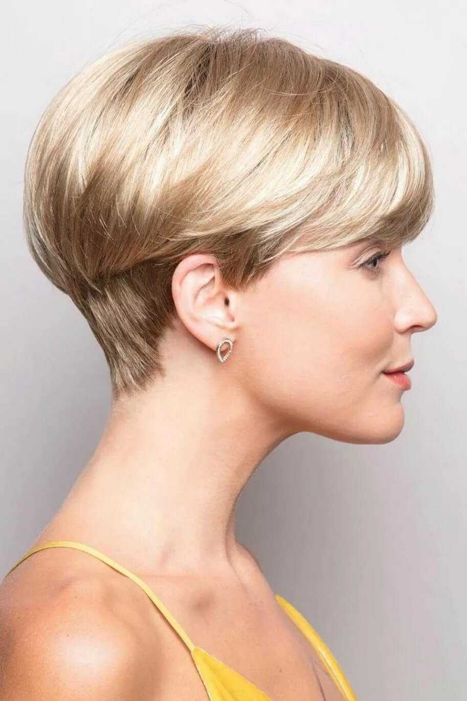 - При невысоком росте и пышных формах желательно выбирать стрижку с гладкими висками и объемными корнями.