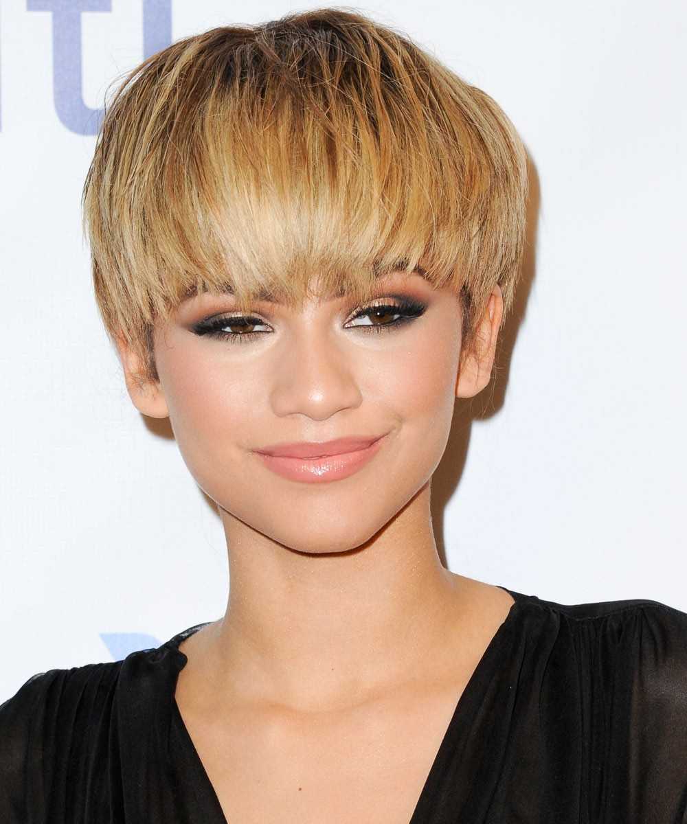 Так, причудливой короткой челкой легко подчеркнуть красоту овального лица.