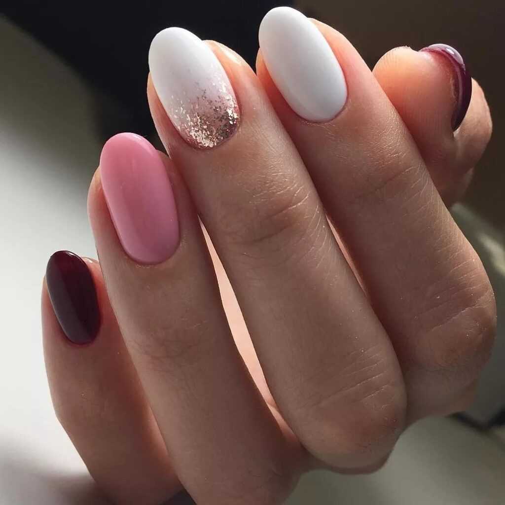 - Многоцветие. В прошлых сезонах очень популярным вариантом маникюра было окрашивание каждого ногтя в свой цвет. Новая мода маникюра не рекомендует использовать более двух цветов, причем они должны гармонировать друг с другом.