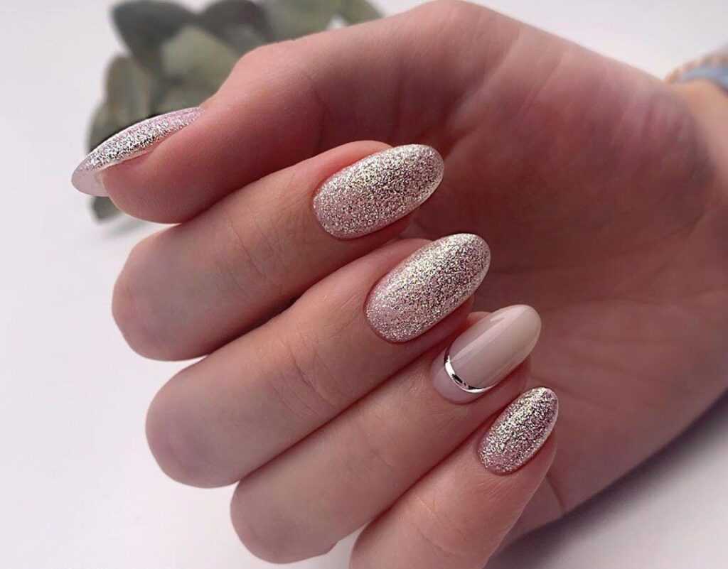 Для оригинального и яркого дизайна нюдового маникюра подойдут любые текстуры, блестки и кружево.