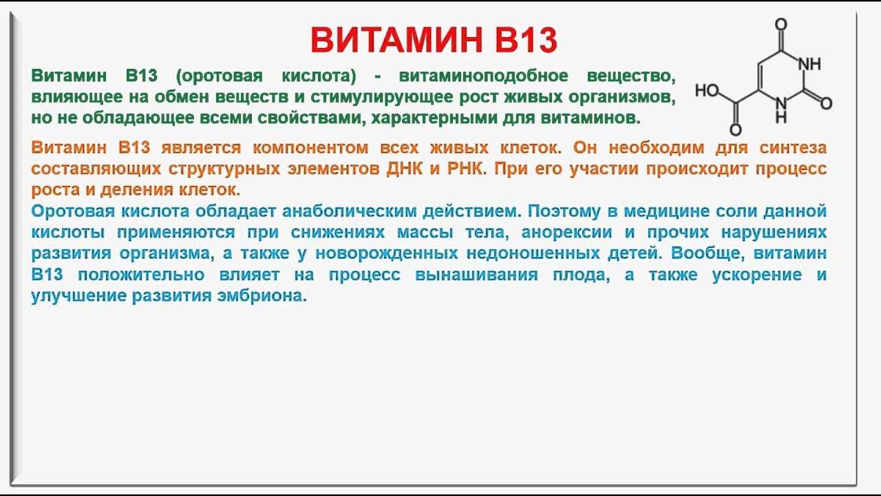 Теперь мы знаем, что данное вещество находится во всех наших клетках, поэтому стоит выяснить, для чего витамин в13 нужен организму.
