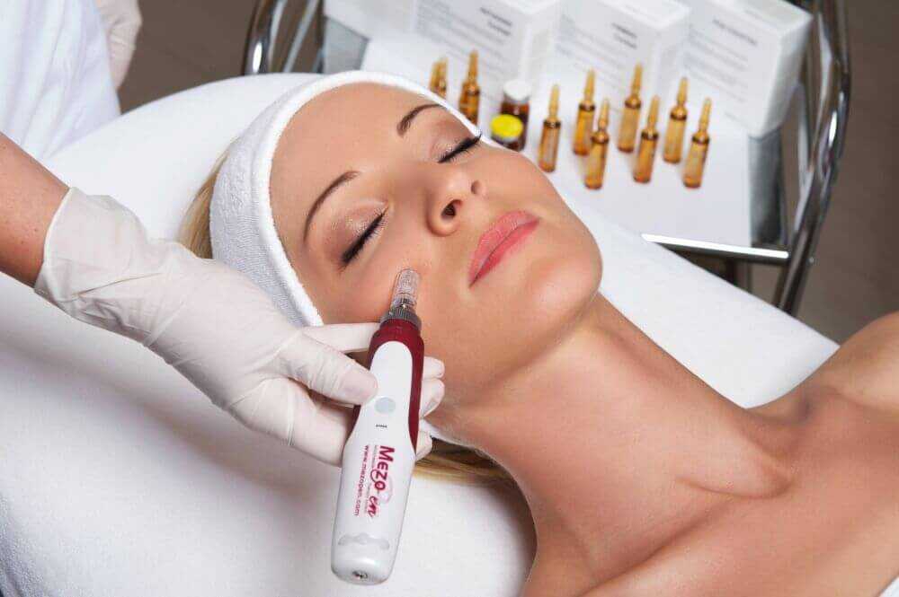 - Мезотерапией. Подкожное введение витаминных коктейлей. Курс состоит из 4-12 инъекций с промежутком около 1 недели. Процедура положительно влияет на внешний вид и качество кожи. При повышенной чувствительности прибегают к безыгольной терапии;