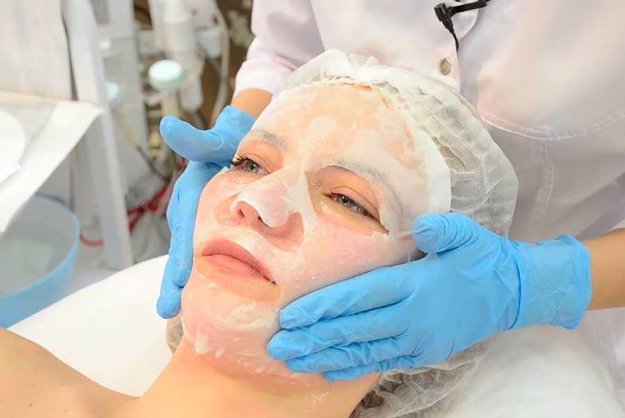 - Лицо тщательно очищается от косметики, пыли, загрязнений. На голову надевается шапочка.