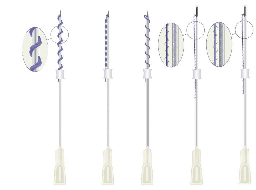 Позволяют подтягивать скулы, подбородок, щеки, создавать эстетичный контур бровей. При введении требуют небольших разрезов (длиной до 5 мм). Их рекомендуют женщинам в возрасте 45-50 лет.