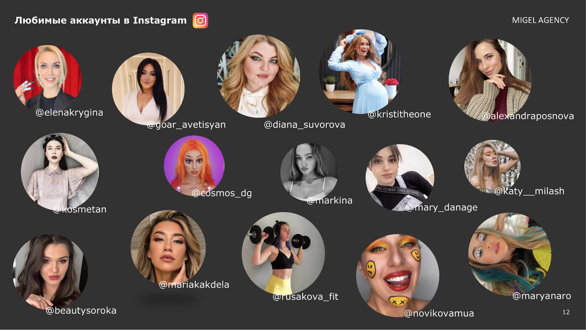 Респонденты рассказали о своих любимых блогерах в сфере бьюти в сети Инстаграм. Женщины часто упоминали блогеров-визажистов: Елену Крыгину, Гоар Аветисян, Кристину Новикову и других. В ответах также были указаны лайфстайл блогеры, такие как Марьяна Ро и Александра Маркина. Они тоже являются лидерами мнений в бьюти для потребителей, хоть эти девушки и не ведут свой блог исключительно про косметические средства.