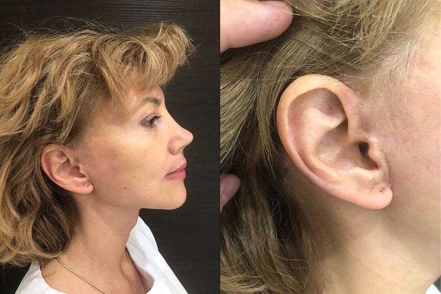 - Швы спереди ушных раковин снимают на 6-7 сутки (для формирования плоского незаметного рубчика), в волосистой части головы — на 10 сутки после операции