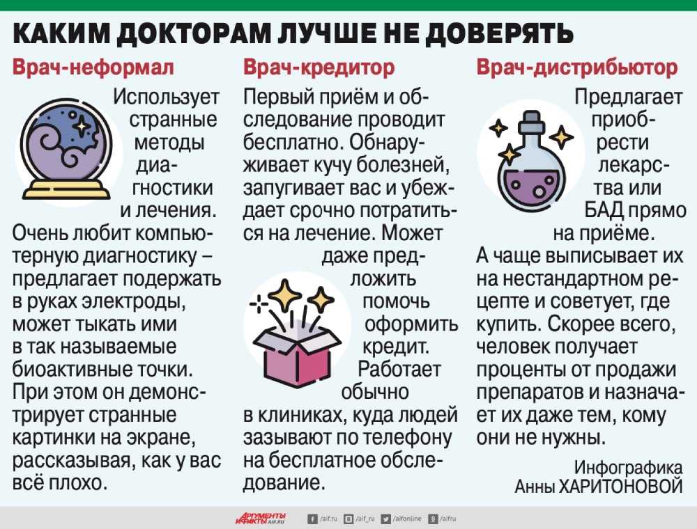 Обман начинается с диагностики. Врач-мошенник выписывает вам кучу направлений на всевозможные анализы, КТ, МРТ и прочие лабораторные, радиологические, инструментальные исследования, цель которых — дать клинике заработать. Кроме того, чем длиннее список анализов, тем выше вероятность найти какие-то незначительные отклонения, а это значит — новые дополнительные обследования, а потом и лечение. При этом игнорируется золотое врачебное правило — лечить нужно не анализы, а больного.