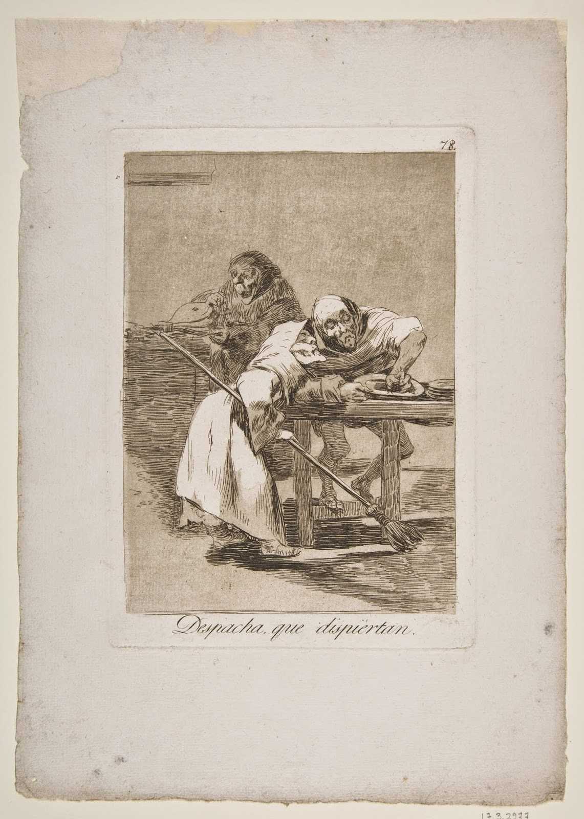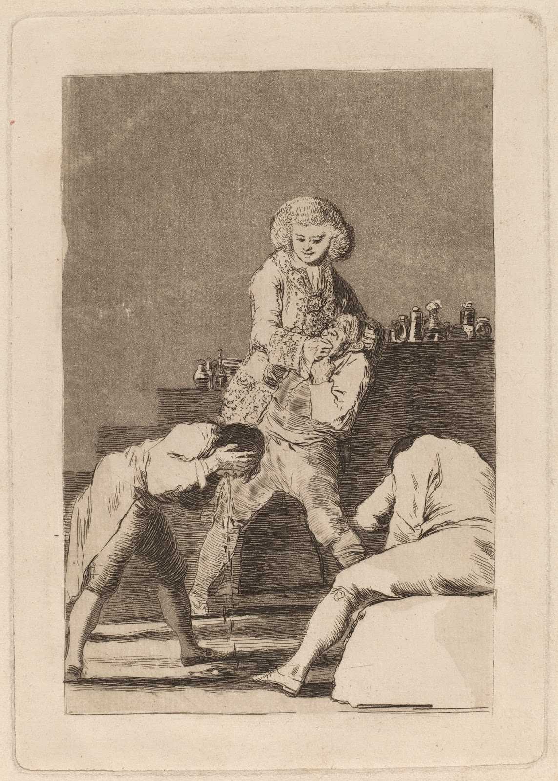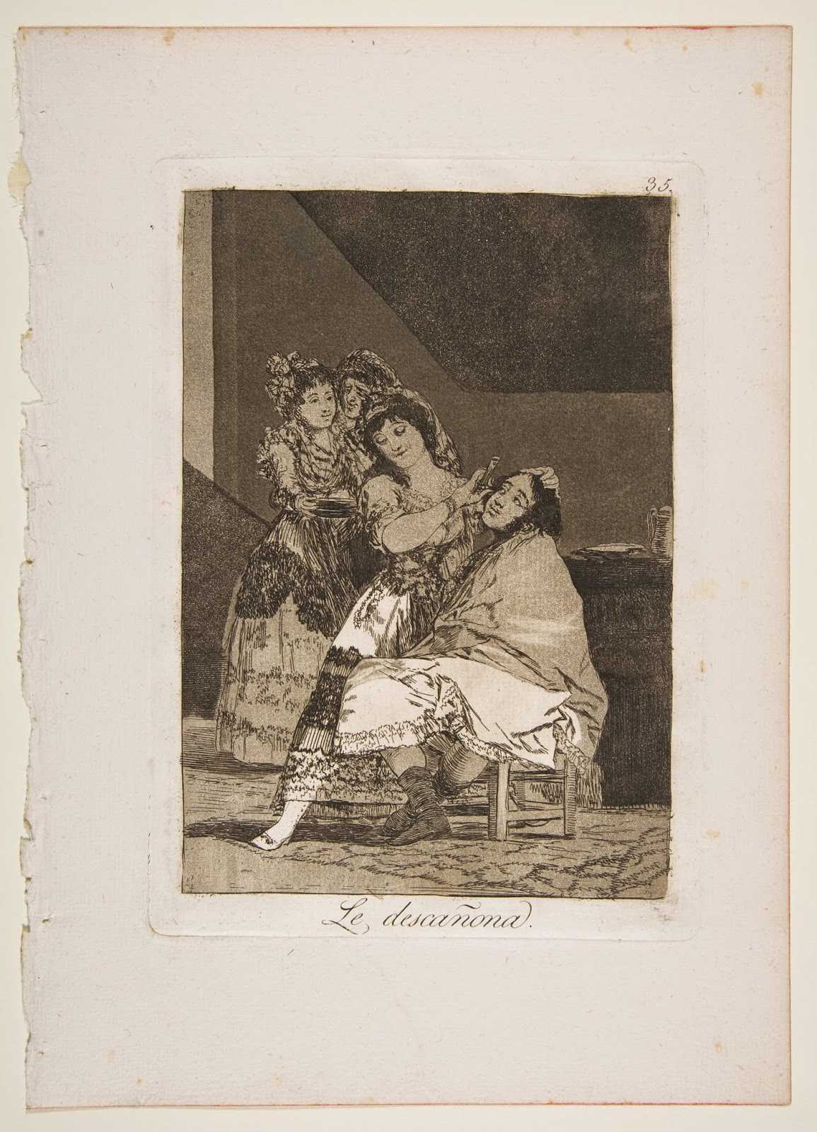 | серия офортов Капричос. Лист 35. Она его гладко бреет |